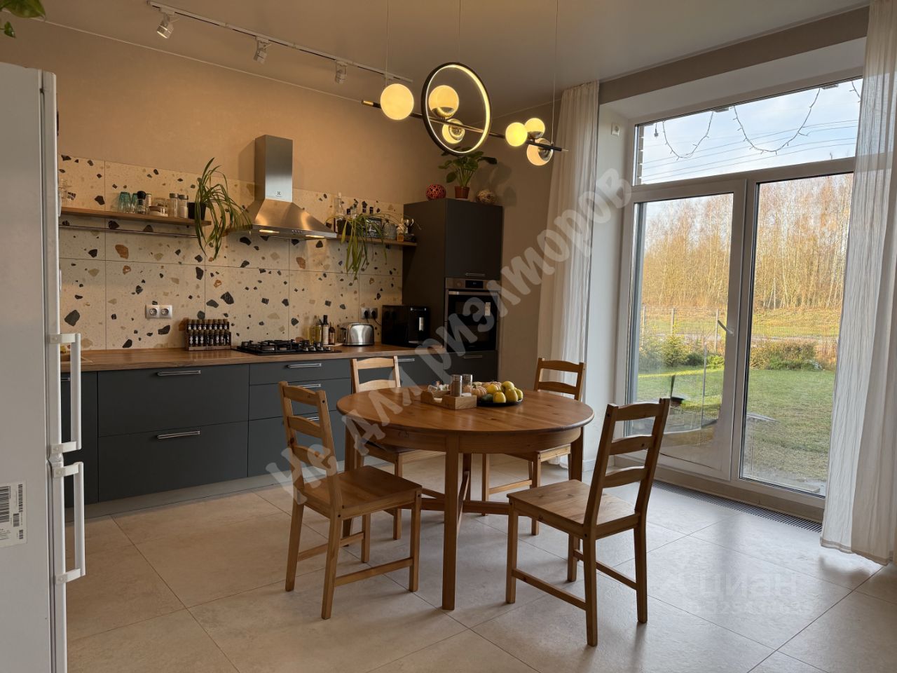 Продается видовой дом с ремонтом, мебелью и садом в современном коттеджном поселке в ближнем загороде.