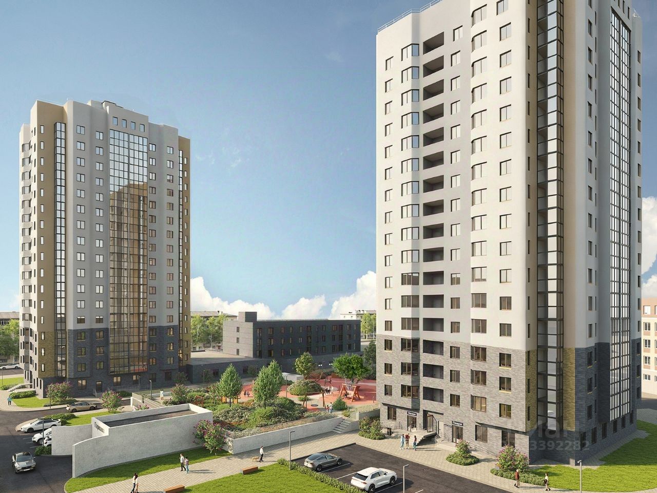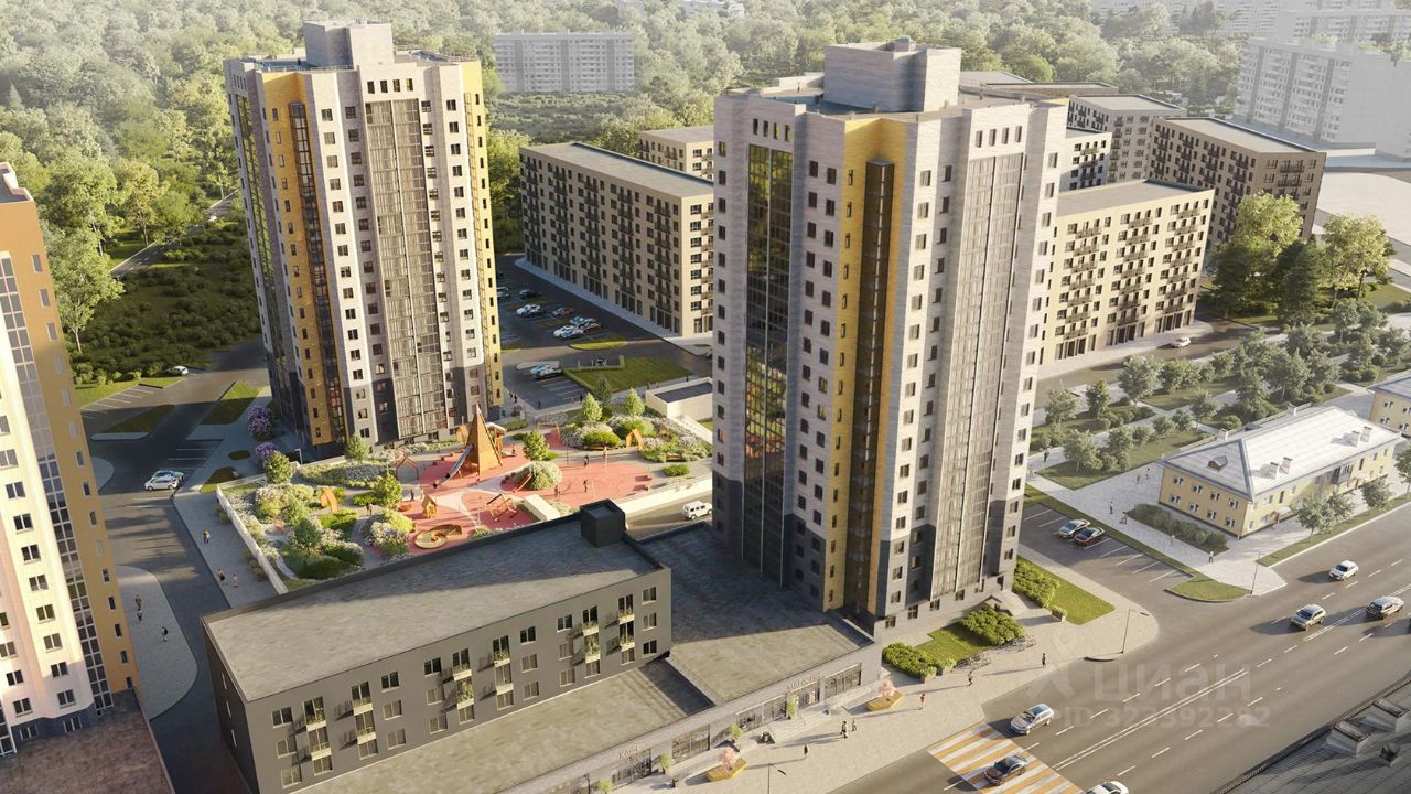Жилые дома образуют квартал, оборудованный детскими и спортивными площадками.