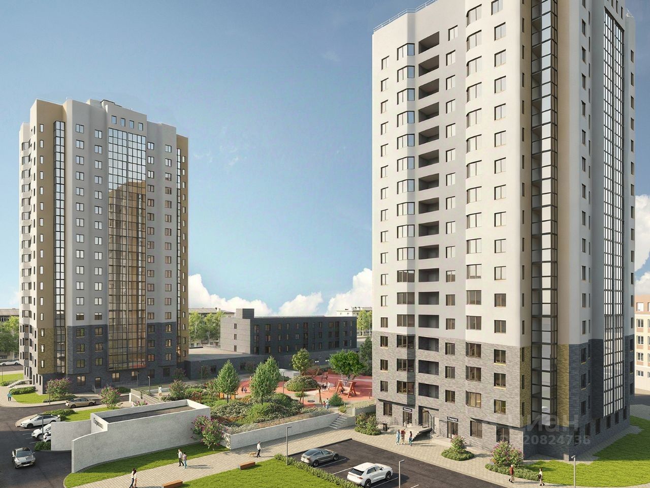 Жилые дома образуют квартал, оборудованный детскими и спортивными площадками.