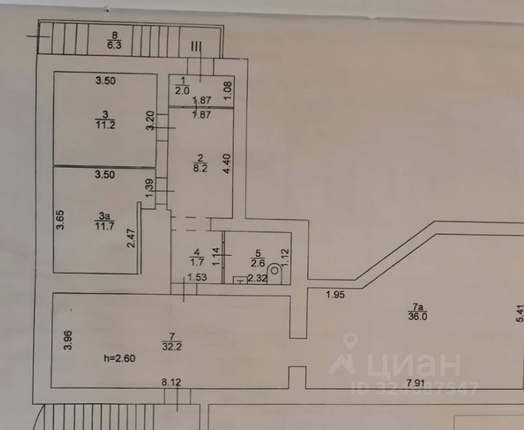 Высота потолков 2,6м.