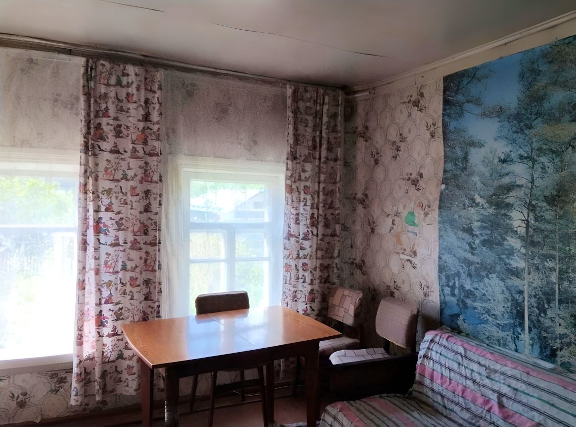 В доме 2 комнаты, кухня, кладовка, природный газ, электричество, также сохранены 2 кирпичные печи. Дом бревенчатый, для круглогодичного проживания, участок под ижс и ведение подсобного хозяйства.