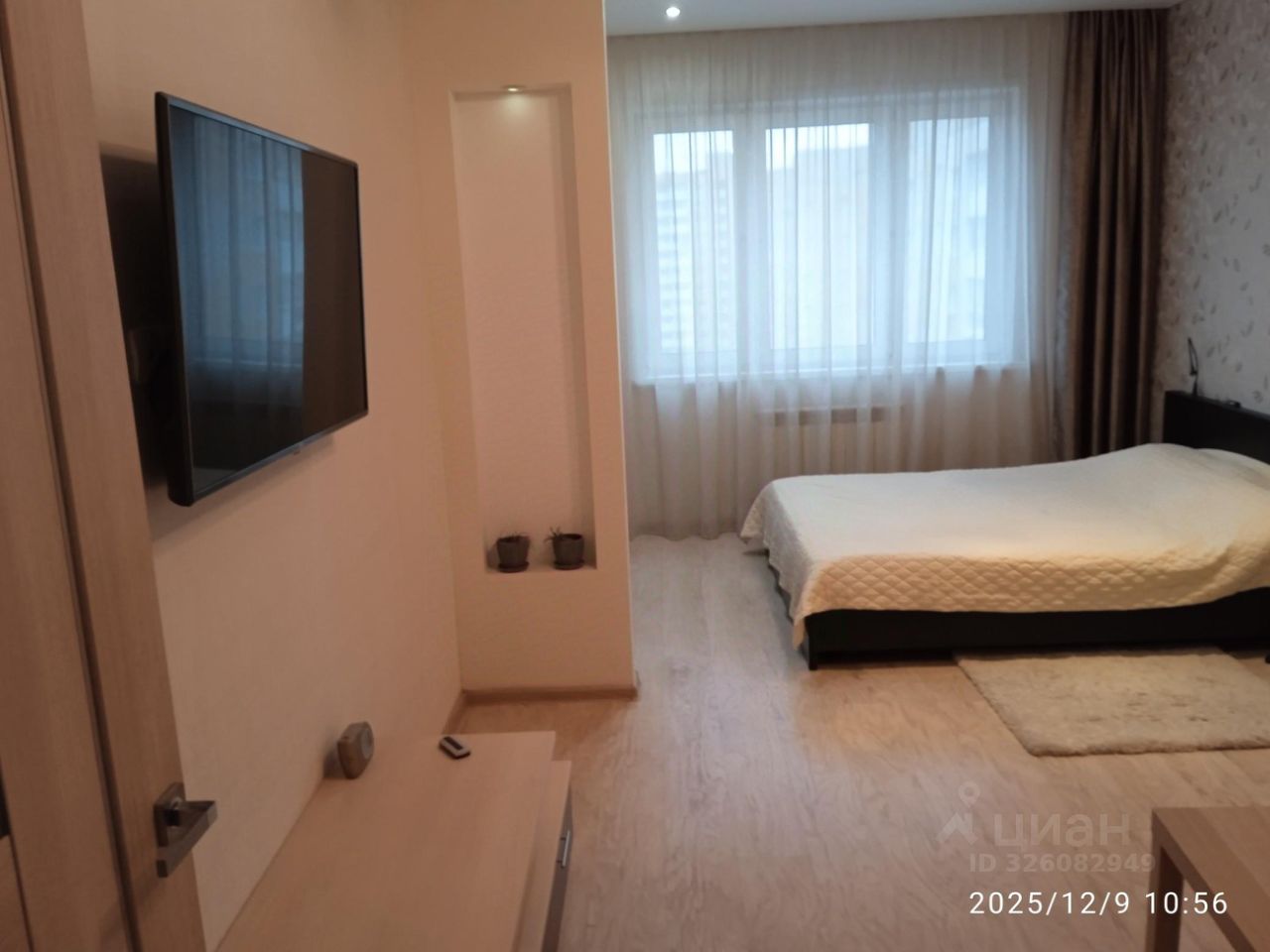 Уютная однушка на 8-м этаже 44,7кв.м., окна комнаты выходят во двор(на восток). Окно кухни и лоджия смотрят на Октябрьский проспект(на запад). В квартире индивидуальное газовое отопление. На кухне имеется все необходимое для жизни(газовая панель, холодильник, чайник, микроволновая печь...). В комнате кровать шириной 1600, диван с выдвижным спальным местом, телевизор, интернет. В прихожей большой шкаф для одежды и вещей.