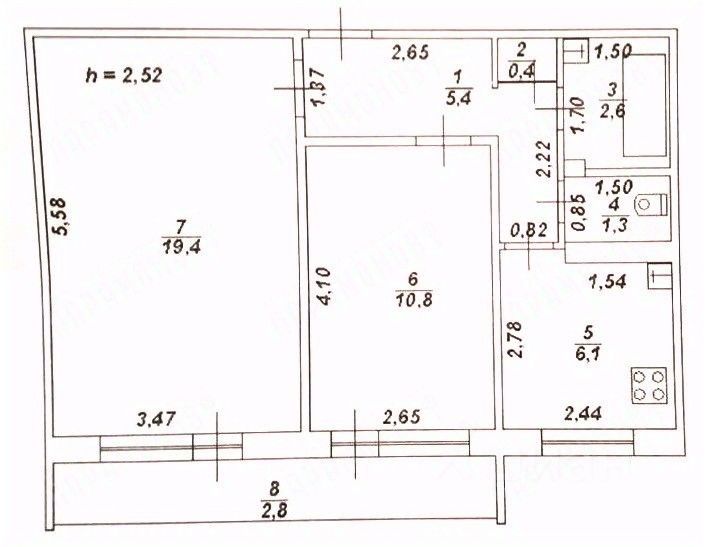 Общая площадь 46 кв.м., кoмнaты 19.4 и 10.8, кухня 6.1, санузел раздельный, лоджия застeклeнa - по вceй шиpине квapтиры.