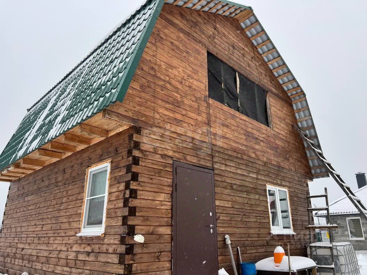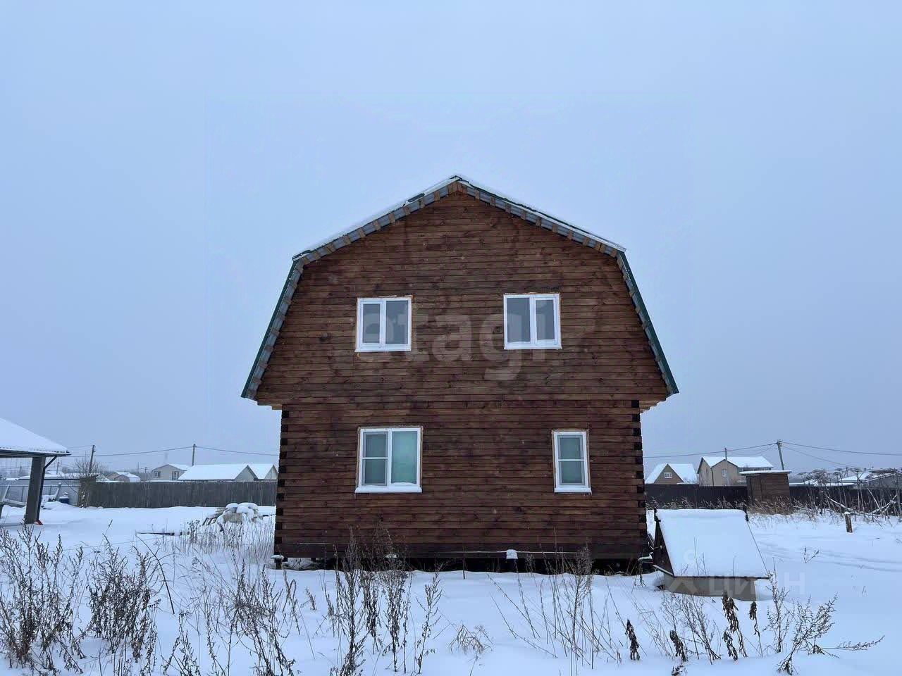 Дом построен из бруса 195х45, фундамент - винтовые сваи. Кровля металлочерепица. Участок разработан, подъезд из щебня. Дорогу регулярно расчищают от снега.