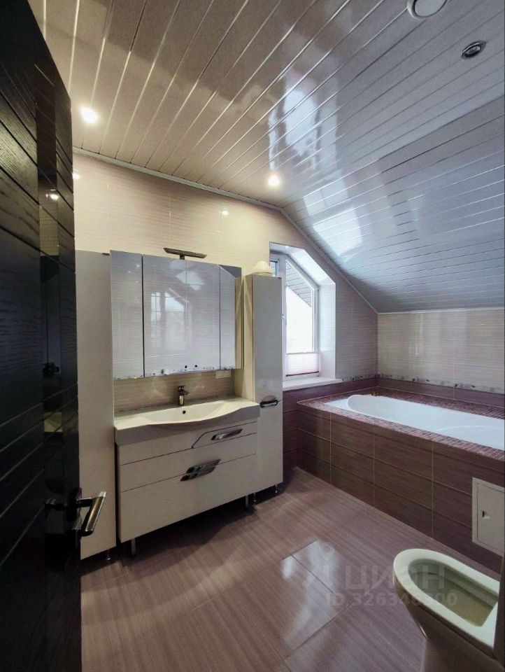 На втором этаже - три спальни, из одной есть выход на просторный балкон, утеплённое помещение над гаражом, как отдельная детская, игровая комната. Совмещённый санузел с большой ванной.