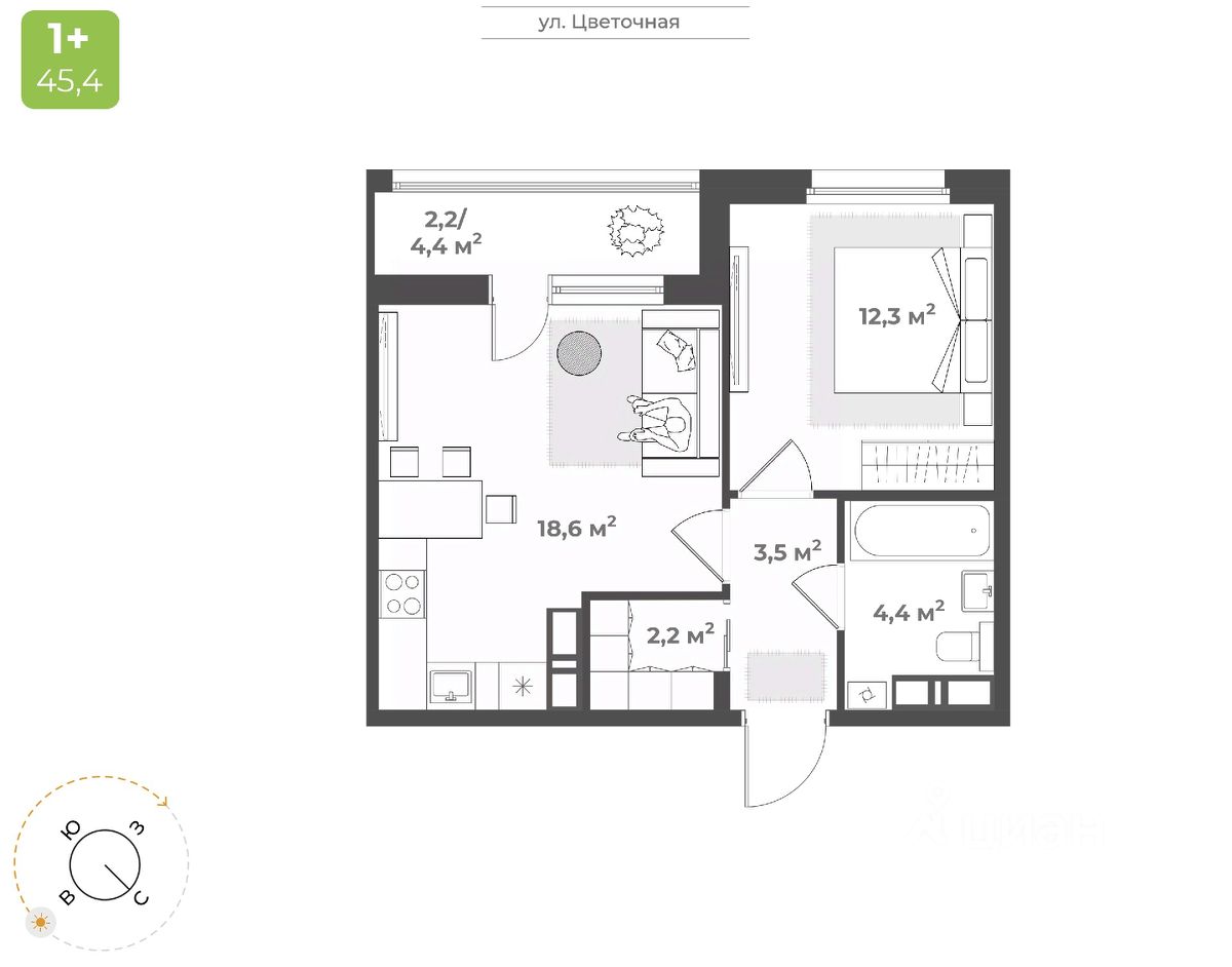 Продаётся 1-комнатная квартира в строящемся доме (Дом 2), срок сдачи: IV-кв. 2026, общей площадью 43.2 кв.м., на 13 этаже. Будущий жилой квартал - это уникальный для Твери проект, обеспеченный всем необходимым для жизни: благоустроенный двор без автомобилей, детские площадки для разных возрастов, зоны для спорта, продуманные планировки квартир. На территории комплекса появится новая школа на 1224 мест и центральный бульвар. Квартал расположен в Заволжском районе на пересечении улиц 2-я Красина и Цветочная. В месте, где транспортными магистралями связаны сразу пять микрорайонов в Заволжье: ближнее Заволжье, Соминка, Радужный, МЖК и Юность. Что обеспечивает жителям квартала удобную транспортную доступность. Кампус ТвГУДетский сад 5Городская клиническая поликлиника 7Фитнес-клубМагазины продуктов питанияПочтовое отделение 10Бассейн ''Парус''Напротив квартала планируется строительство школы на на 1224 местаДома расположены так, чтобы у жителей создавалось ощущение уюта и безопасного пространства. Все, что нужно для спокойного и тихого отдыха, находится во дворе, а подход к магазинам, парикмахерским, салонам услуг - с внешней стороны квартала. Двор внутри квартала принадлжеит только жителям, в нем нет случайных прохожих и проезжающих автомобилей. Мы выбрали проект, который предполагает, что дома в квартале будут разной высоты - от 9 до 25 этажей. Это позволяет избежать монотонности в застройке, а кроме того, благодаря чередованию высоких и низких секций во дворе больше солнца.