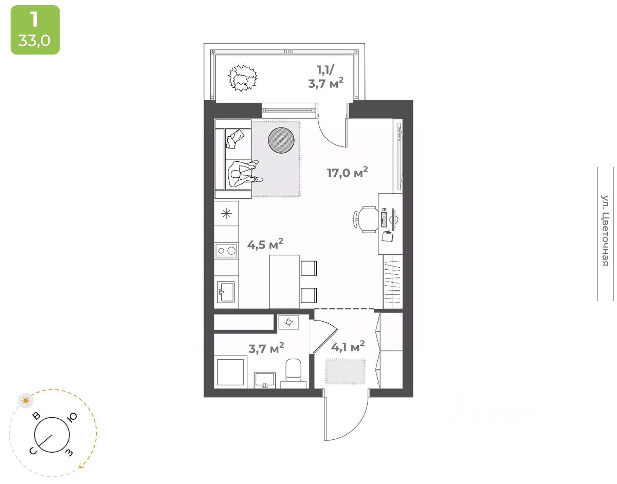 Продаётся студия в строящемся доме (Дом 2), срок сдачи: IV-кв. 2026, общей площадью 30.4 кв.м., на 4 этаже. Будущий жилой квартал - это уникальный для Твери проект, обеспеченный всем необходимым для жизни: благоустроенный двор без автомобилей, детские площадки для разных возрастов, зоны для спорта, продуманные планировки квартир. На территории комплекса появится новая школа на 1224 мест и центральный бульвар. Квартал расположен в Заволжском районе на пересечении улиц 2-я Красина и Цветочная. В месте, где транспортными магистралями связаны сразу пять микрорайонов в Заволжье: ближнее Заволжье, Соминка, Радужный, МЖК и Юность. Что обеспечивает жителям квартала удобную транспортную доступность. Кампус ТвГУДетский сад 5Городская клиническая поликлиника 7Фитнес-клубМагазины продуктов питанияПочтовое отделение 10Бассейн ''Парус''Напротив квартала планируется строительство школы на на 1224 местаДома расположены так, чтобы у жителей создавалось ощущение уюта и безопасного пространства. Все, что нужно для спокойного и тихого отдыха, находится во дворе, а подход к магазинам, парикмахерским, салонам услуг - с внешней стороны квартала. Двор внутри квартала принадлжеит только жителям, в нем нет случайных прохожих и проезжающих автомобилей. Мы выбрали проект, который предполагает, что дома в квартале будут разной высоты - от 9 до 25 этажей. Это позволяет избежать монотонности в застройке, а кроме того, благодаря чередованию высоких и низких секций во дворе больше солнца.