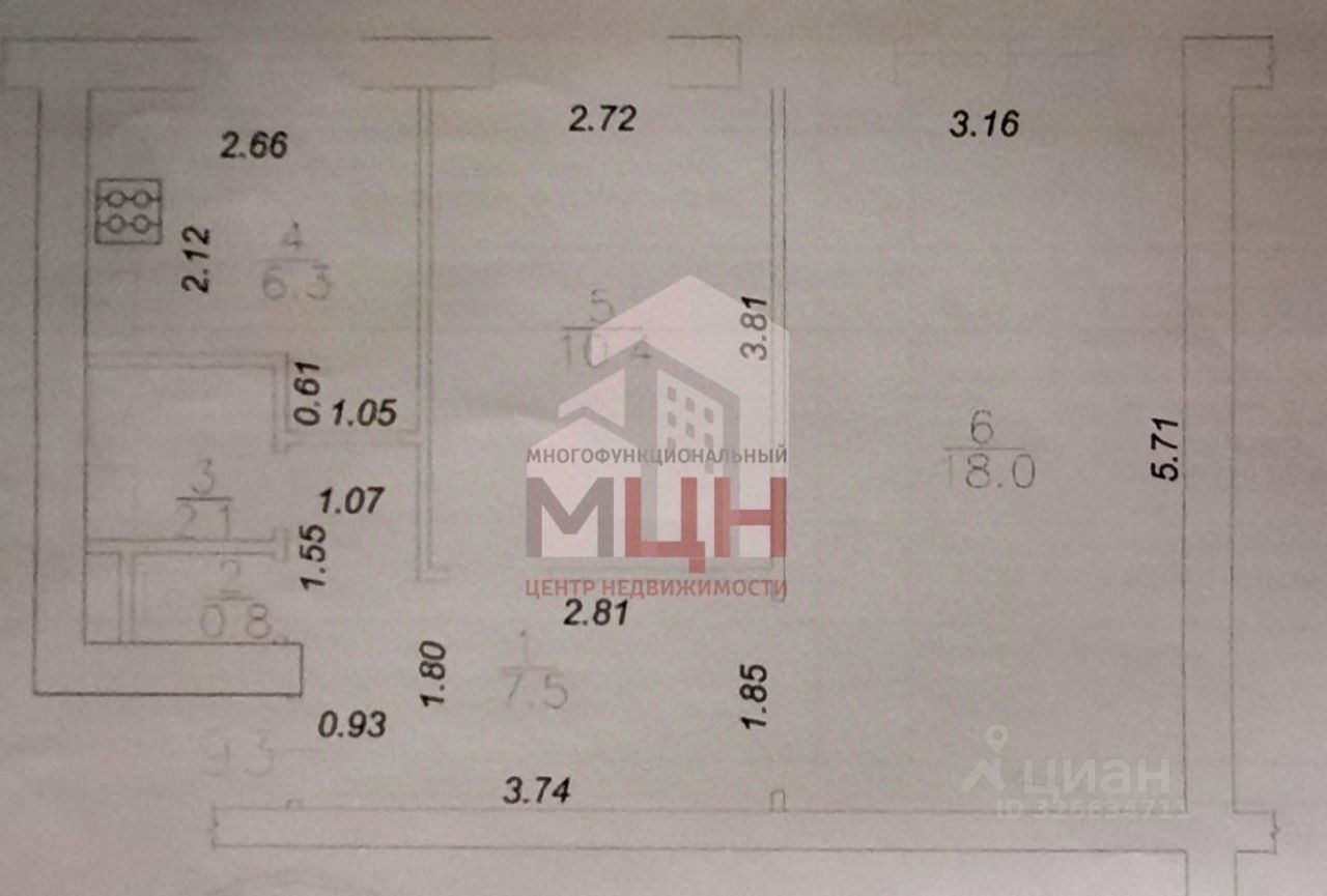 Квартира расположена на 6-м этаже 9-этажного кирпичного дома.