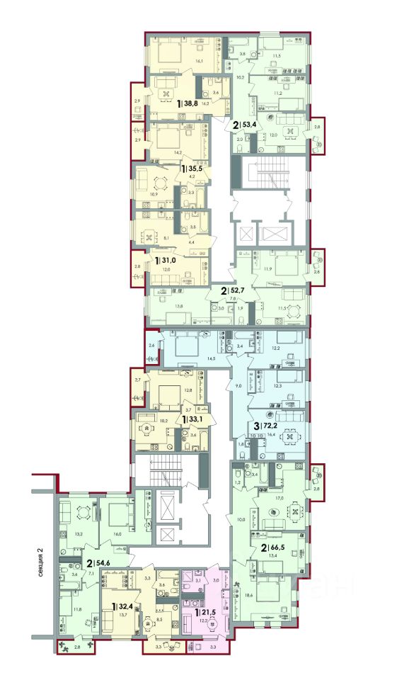 Квартира в эко-квартале комфорт-класса плюс ''Есенинские поля'': • Кирпичный дом с панорамным остеклением с 5 этажа. • Закрытая территория с круглосуточной системой видеонаблюдения. • Рядом ТЦ ''Есенин'' и термальный комплекс ''Новые Термы'' с бассейнами. • Порядок на территории поддерживает собственная управляющая компания. • Умные, развивающие детские площадки и спортзал под открытым небом. • Зелёный двор-парк и лаундж-зоны для отдыха на природе. • Филиал городской поликлиники. • Безбарьерная среда для мам с колясками, пожилых и маломобильных людей: вход с уровня земли, просторный проходной лифт. • Скейт площадка. • Детский сад ''Новые дети''. • Премиальные фасадные решения ''3D и баварская кладка''. • Мобильное приложение от застройщика.