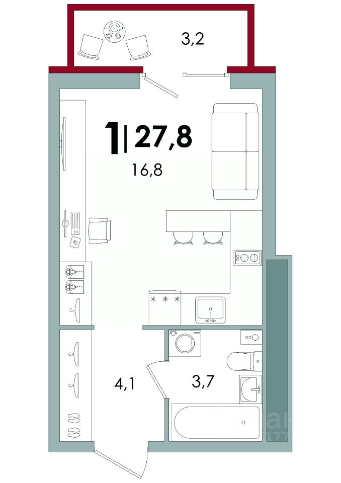 Общая площадь27,8 м2