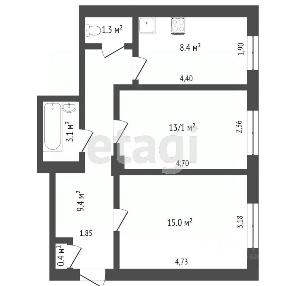 В продаже отличная квартира с хорошей планировкой, общей площадью 56,7 кв.м., две комнаты 17,3 и 13,3 кв.м. очень просторные и правильной формы, кухня 8,1 кв.м., просторная прихожая с большой гардеробной зоной около 5 кв.м. Квартира не угловая, в хорошем состоянии, балкон застеклен, с/у раздельный. Дом расположен в активно развивающемся и востребованном районе города,- Мамулино. Рядом: новая школа, детский сад, магазины. Благоустроенная придомовая территория. Во дворе современная детская площадка, парковка для а/м. Рядом парк. В шаговой доступности торговые центры, тренажерный зал, аптеки, крупные магазины. В 5 минутах езды крупные торговые центры Глобус,Тандем,Леруа Мерлен и Парк 1.