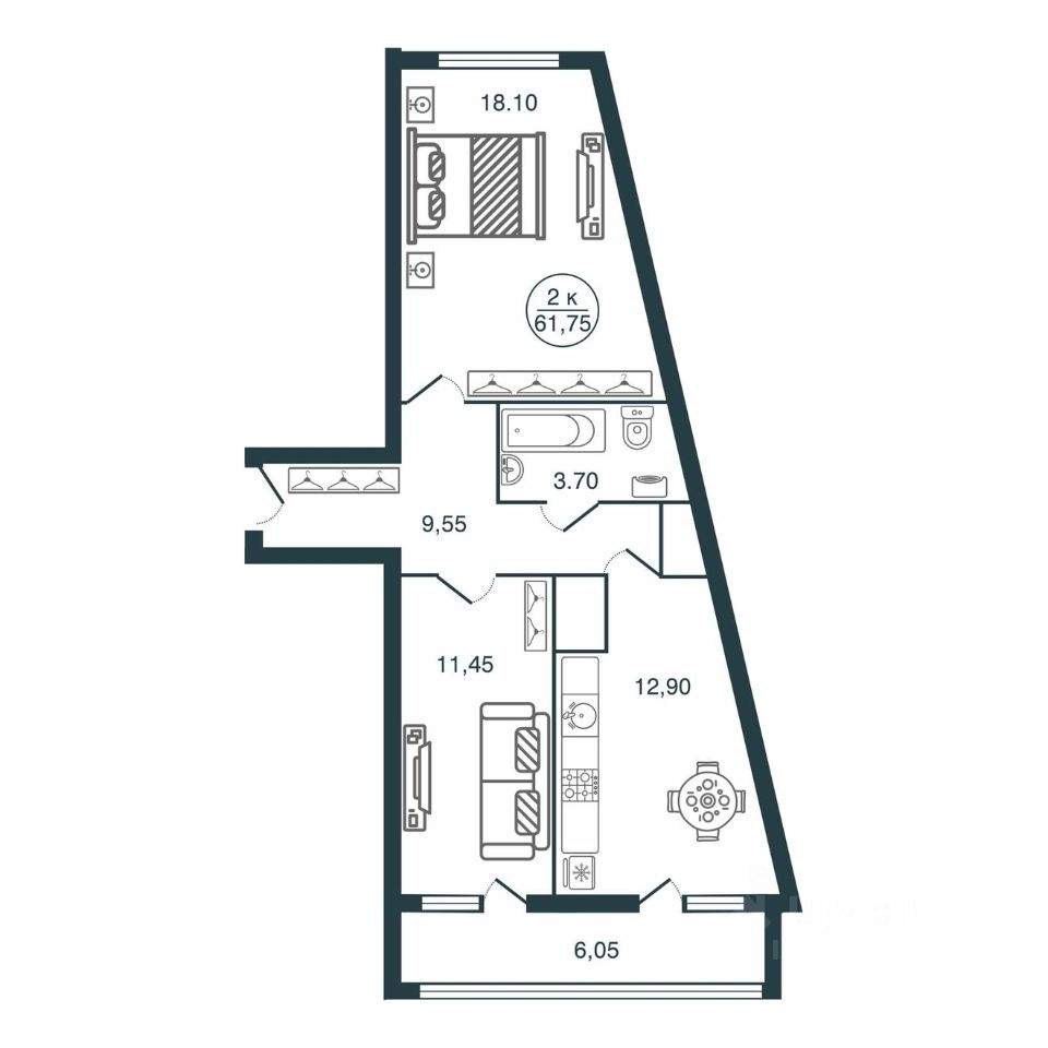 Общая площадь61,75 м2