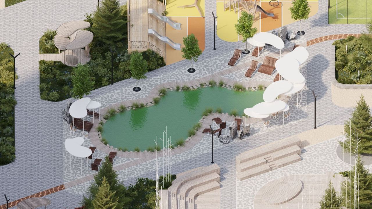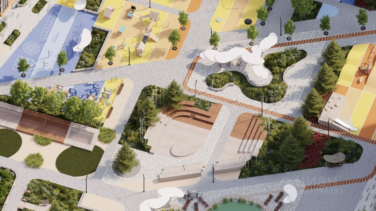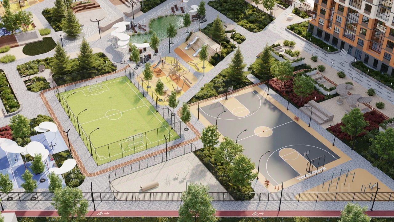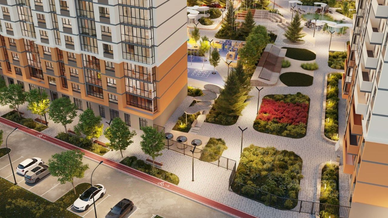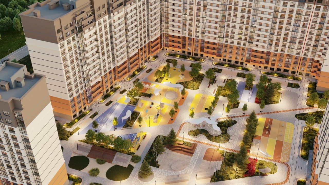 Двор и благоустройство: — Детские и спортивные площадки — Искусственный водоём и озеленённые аллеи для прогулок — Современное освещение и ландшафтный дизайн — Комфортная среда для жизни и отдыха